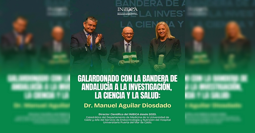 En un emotivo acto celebrado en el Museo de la Atalaya en Jerez, la Junta de Andalucía ha distinguido al Dr. Manuel Aguilar Diosdado con la Bandera de Andalucía de la provincia de Cádiz 2026 en la categoría de Investigación, Ciencia y Salud.